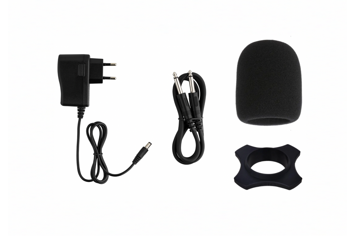 Комплектація: 1 приймач, 1 ручний мікрофон, 1 поясний передавач, 1 наголовна гарнітура, 1 петличний мікрофон, 1 інструментальний кабель, адаптер живлення 110 - 240В, 4 батарейки розміру АА для мікрофонів, інструкція англійською мовою.